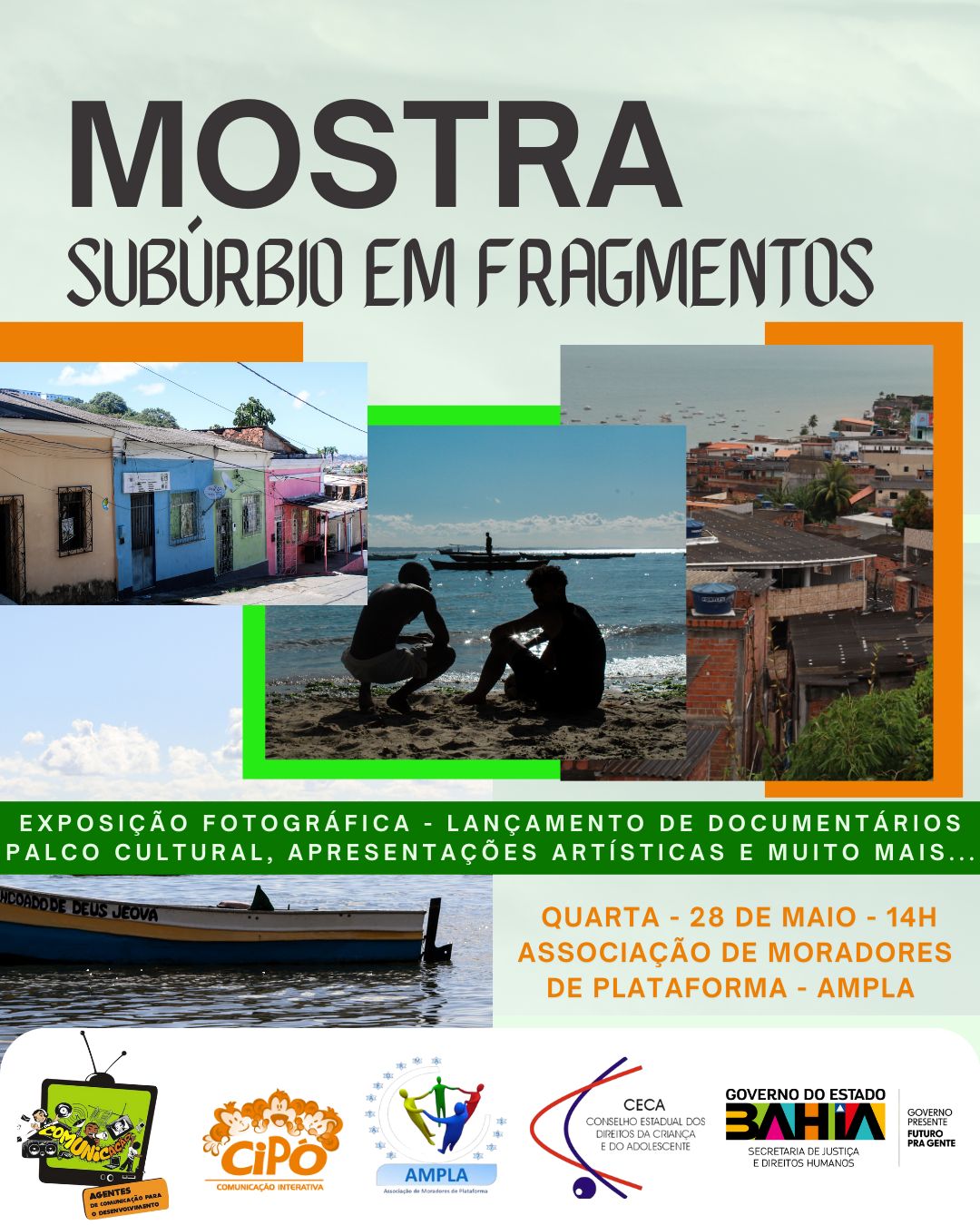 Um resgate visual e simbólico de memórias através da comunicação. Esse é um dos objetivos da Mostra Subúrbio em Fragmentos, realizada pela CIPÓ – Comunicação Interativa, através da Agência de Comunicação do Subúrbio. O evento apresenta o resultado do processo formativo realizado com jovens residentes do Subúrbio Ferroviário. A mostra acontece na próxima quarta-feira, dia 28 de maio, às 14h, na Associação de Moradores de Plataforma – AMPLA, aberto ao público.