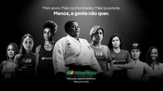 As atletas do Time Neoenergia protagonizam a nova campanha publicitária da marca “Mais pelo esporte feminino”, que estreia nesta terça-feira (15) em plataformas digitais e na TV aberta. No filme de lançamento, as campeãs Bia Souza (judô), Ana Marcela (águas abertas), Antonia Silva (futebol), e Rayane Soares (atletismo paralímpico) e demais atletas embaixadoras, reforçam o compromisso da Neoenergia de estimular a sociedade a valorizar a presença da mulher dentro e fora do esporte. Assista aqui.