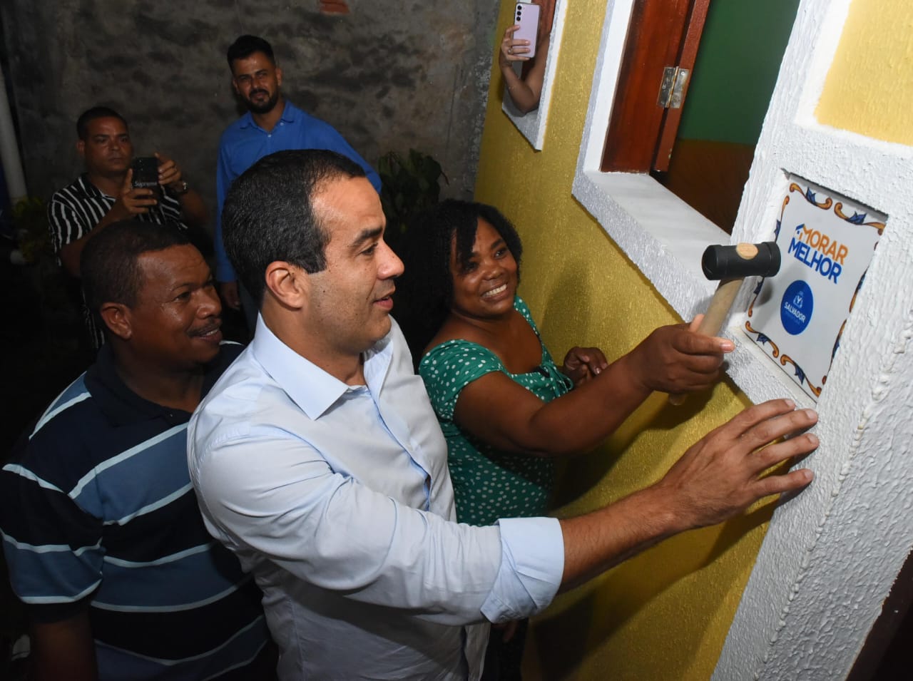 A Prefeitura de Salvador entregou mais 200 casas reformadas pelo Morar Melhor em Nova Constituinte, juntamente com a Praça Péricles Teixeira, construída para o lazer dos moradores. A entrega das melhorias habitacionais foi realizada, na noite desta sexta-feira (7), pelo prefeito Bruno Reis, ao lado do secretário de Infraestrutura e Obras Públicas, Francisco Torreão, e de lideranças locais. Ao todo, já foram reformadas 724 casas pelo programa no bairro. Em Salvador, já são mais de 52 mil.