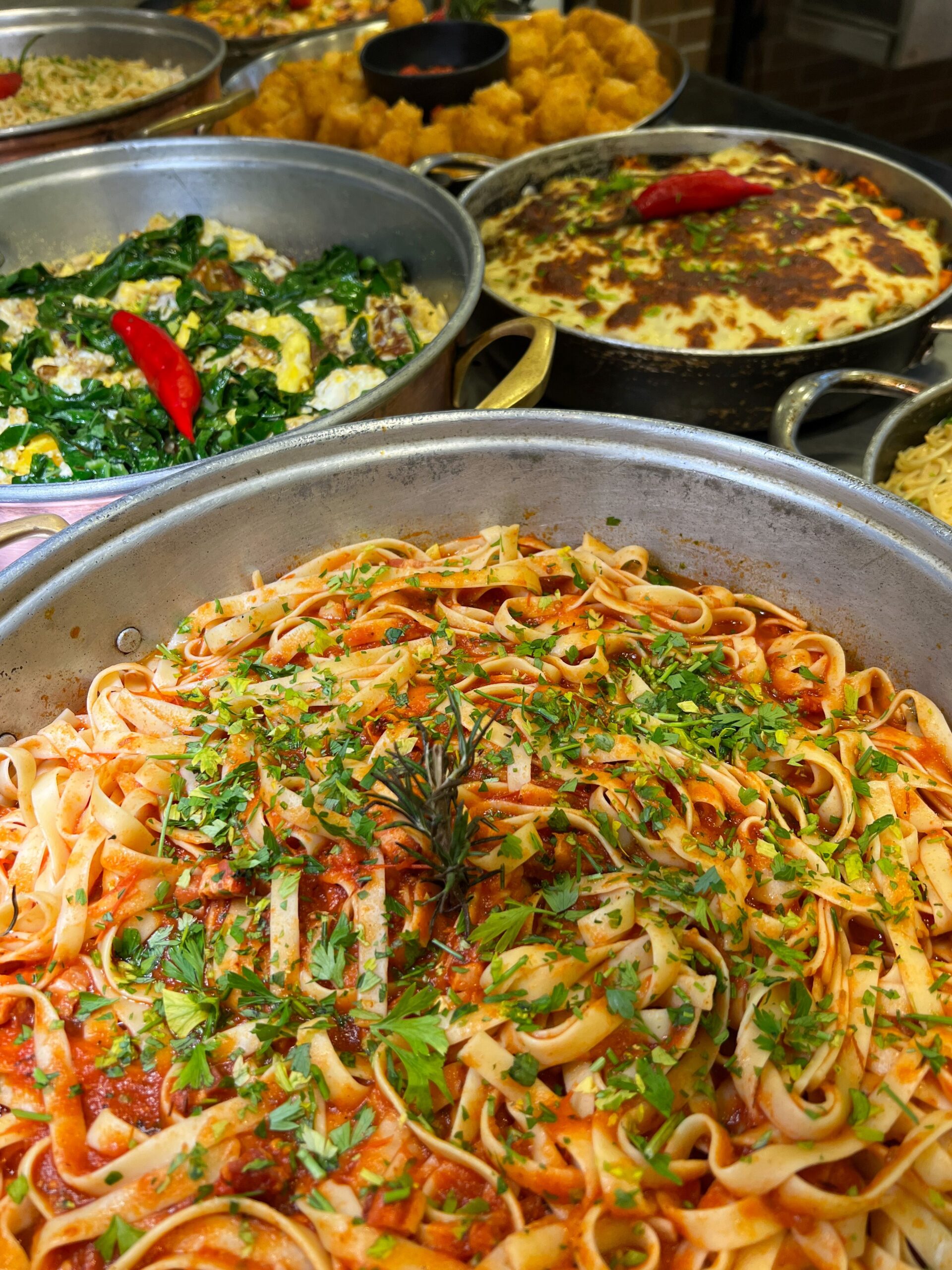 A Cozinha do Pasta & Brasa é um verdadeiro tesouro gastronômico, com foco na variedade e qualidade dos ingredientes, seguindo uma abordagem Mediterrânea que prioriza o frescor e a naturalidade de cada estação. O diferencial do restaurante é o buffet livre, onde os clientes podem desfrutar de uma única vez das estações de saladas, pratos quentes, massas, pizzas e ainda escolher uma proteína na estação Rosticceria, tudo por um preço fixo e atrativo.