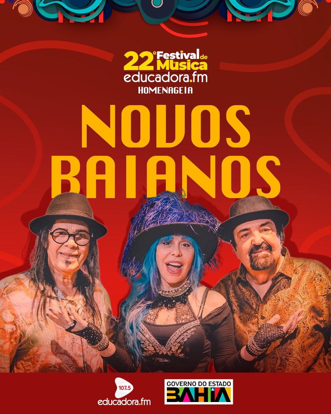 Um dos maiores grupos musicais do Brasil, os Novos Baianos são os homenageados do 22° Festival de Música Educadora FM. Pepeu Gomes, Baby do Brasil e Paulinho Boca trazem a turnê ‘Acabou Chorare: Novos Baianos se encontram’ para a Concha Acústica do Teatro Castro Alves no dia 07 de dezembro (sábado), durante a cerimônia de premiação do Festival de Música Educadora FM, com transmissão ao vivo na Educadora FM, TVE e redes sociais.