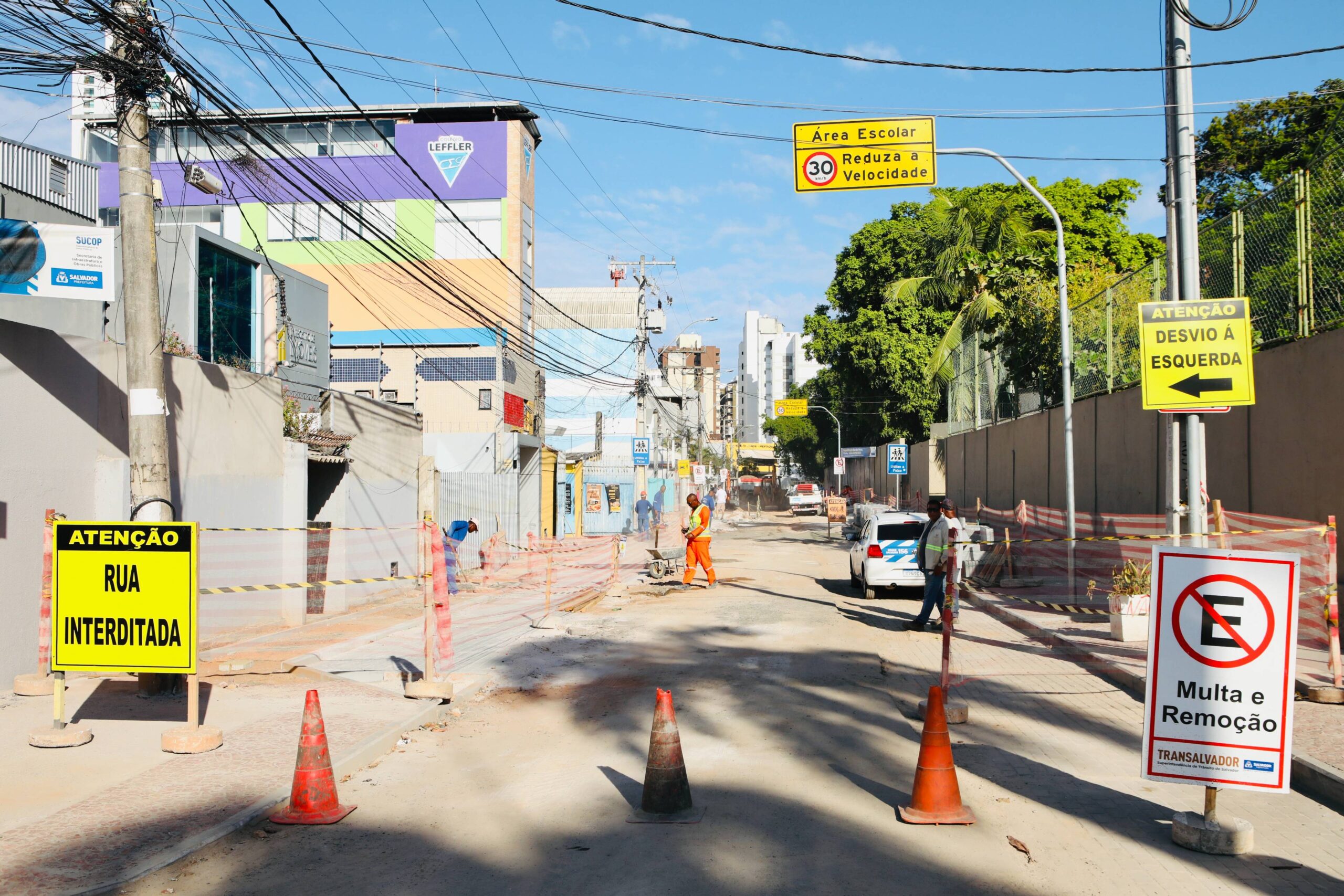Com previsão de conclusão para o mês de março, a obra de requalificação urbana da Rua das Rosas, no bairro da Pituba, acelerou os trabalhos para evitar os impactos em virtude da proximidade da volta às aulas. Para tanto, a Superintendência de Trânsito de Salvador (Transalvador) realizou o bloqueio de todo o logradouro até o dia 25 de fevereiro.