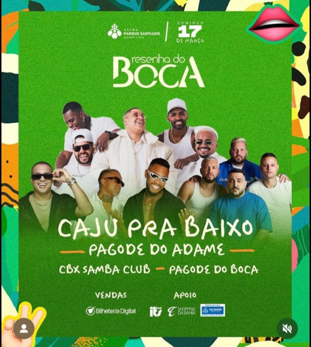 O que começou apenas como uma brincadeira, cresceu, tomou corpo e criou “boca”. A “Resenha do Boca” que está em sua 7ª edição, e praticamente, é um evento que faz parte do calendário dos amantes do samba. Com quatro edições por ano, a festa que reúne as melhores atrações do gênero, vai fazer seu primeiro encontro de 2024.  Com as bandas “Caju pra Baixo”, Pagode do Adame”, CBX Samba Club e Pagode do Boca, no dia 17 de março (domingo), a partir das 14h, no Parque Arena Santiago (em frente ao Detran).