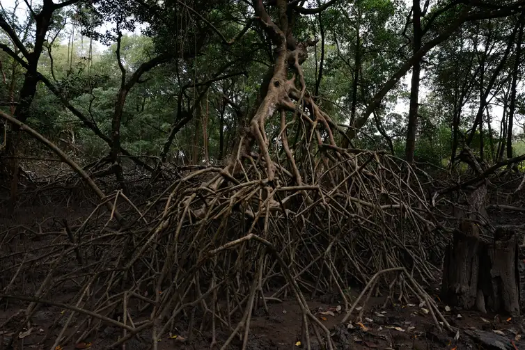 Um deles é a capacidade de retirar gás carbônico da atmosfera e armazená-lo no solo, que, por ser muito úmido e denso, acaba retendo o gás poluente. De acordo com Fernandes, os manguezais da região armazenam 600 toneladas de carbono por cada hectare, de acordo com as medições feitas pelo projeto. “Isso é muita coisa. Então, é mais do que a média mundial”, diz.