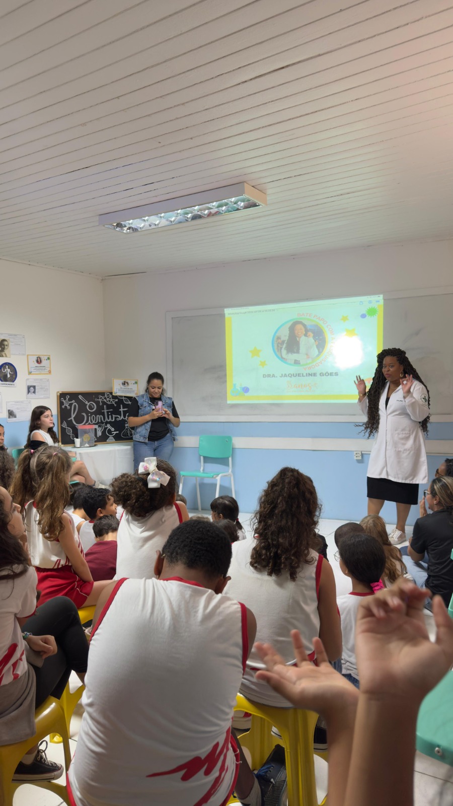 Já o segundo momento, foi realizado na Escola Modelo Eunice Palma, localizada na Rua Frederico Costa, em Periperi. Sob direção de Maria Emília, o objetivo desse encontro foi inspirar as crianças a partir das vivências e trajetórias de Jaqueline, tanto como profissional, quanto como mulher negra, podendo impactar positivamente as novas gerações. O convite para esse encontro partiu de uma professora que lecionou para Jaqueline na adolescência