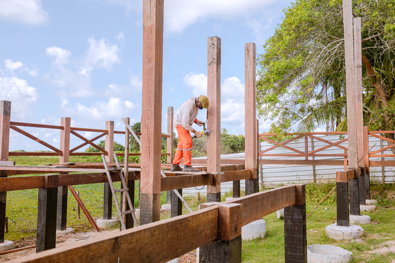 A construção da ponte que conectará as comunidades de Areias e Piabas, situadas na costa do município, continua em edificação. Projetada para promover o desenvolvimento local e um acesso ainda mais eficiente e seguro para a população, a estrutura, que terá um vão de 280 metros (m) de extensão, está sendo construída em madeira de lei, a fim de garantir durabilidade e resistência ao longo dos anos.