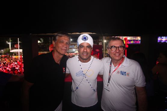 O prefeito Bruno Reis esteve no Planeta Band na noite desta segunda-feira (12) e foi recebido pelo sócio-diretor do camarote, Clinio Bastos, e pelo diretor da Band Nordeste, Augusto Correia Lima. O gestor municipal contou ter acompanhado a história do Planeta Band desde o início e revelou: “sou folião assíduo aqui do camarote nesses 22 anos e, a cada ano, ele está melhor. Esse ano está belíssimo, as instalações, a infraestrutura sempre melhorando. Parabéns ao camarote Planeta Band, parabéns a todos que organizam, a Clinio, a Alex e à Band, na figura de Augusto. Vocês têm uma longa história e fizeram uma grande entrega esse ano. Estou muito feliz por esse camarote, um dos melhores do Carnaval de Salvador”.
