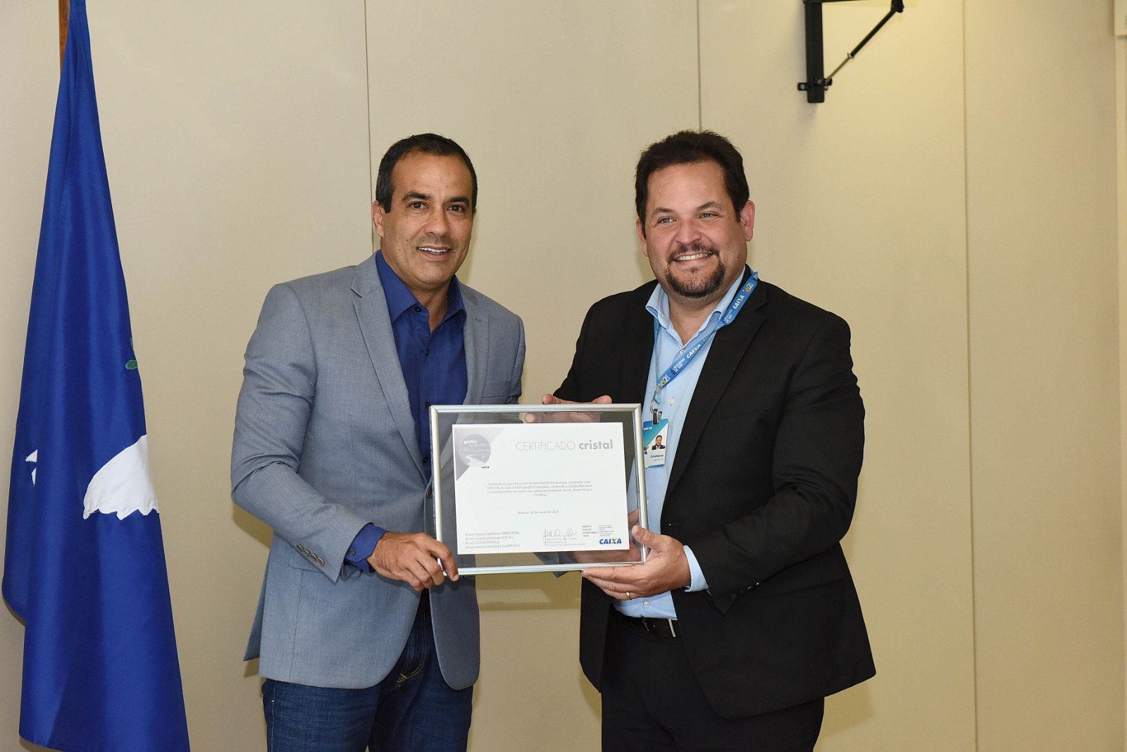 A Prefeitura de Salvador alcançou mais um reconhecimento importante para a cidade: o Selo Caixa Gestão Sustentável, que reconhece o comprometimento da administração pública com os cidadãos. O prêmio foi entregue à capital na tarde desta quarta-feira (8) em evento realizado no Palácio Thomé de Souza, Centro, com a presença do prefeito Bruno Reis e de representantes da Caixa Econômica Federal.