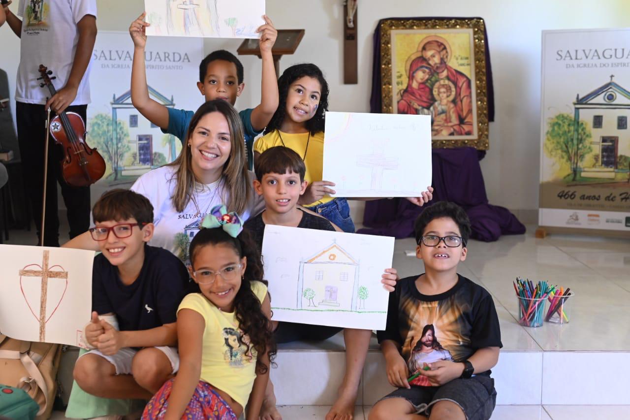 O Projeto de Salvaguarda da Igreja do Espírito Santo realizou uma oficina de arte voltada para os alunos da catequese. Bastante divertida, criativa e educativa, a iniciativa, que teve como tema “O que a Igreja do Espírito Santo representa para você?”, beneficiou cerca de 70 crianças de Vila de Abrantes, na costa de Camaçari, aconteceu no sábado (21/9), no Salão Paroquial da instituição religiosa.