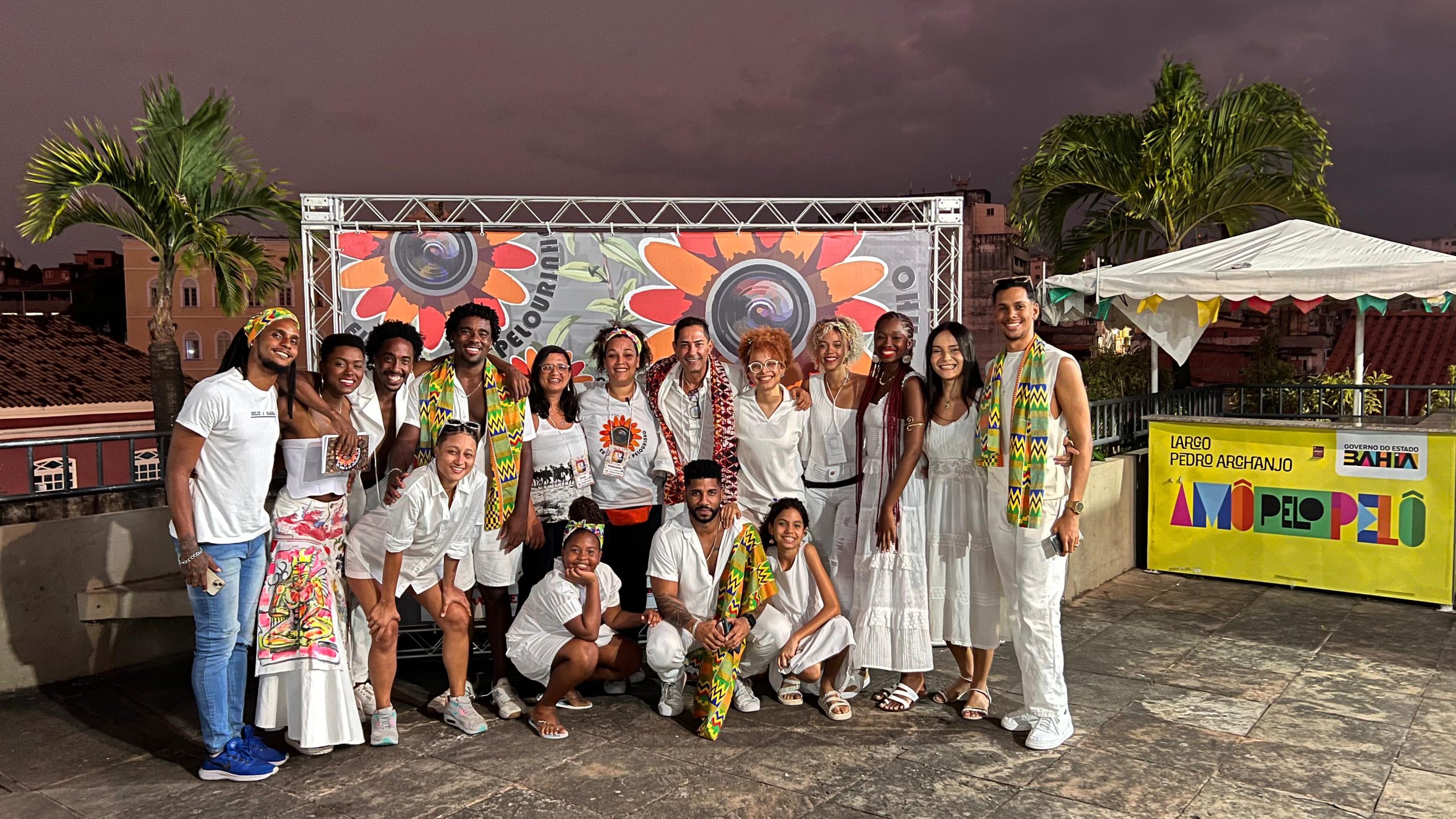 Lançamento festivo – O lançamento oficial do projeto sociocultural “Eu Sou a TV Pelourinho” aconteceu no último dia 23, na Praça Pedro Arcanjo, com uma cerimônia emocionante e festiva que contou com a presença do Olodum, dos cantores Dão, Aloisio Menezes e Lia Chaves, de todo o elenco da TV Pelourinho, e de autoridades das esferas federais e governamentais, fundamentais para a concretização do projeto. Representando a ministra Margareth Menezes, veio de Brasília Fabiano Piuba, secretário de Formação, Livro e Leitura e Mariangela Andrade, diretora de Formação Artística, ambos do Ministério da Cultura; representando o Governo da Bahia, o secretário de Cultura Bruno Monteiro; estiveram presentes também Penildon S. Filho, da Universidade Federal da Bahia. A cerimônia de lançamento deu início oficialmente ao curso que durante nove meses proporcionará formação em várias áreas do audiovisual a 50 adolescentes e jovens baianos.