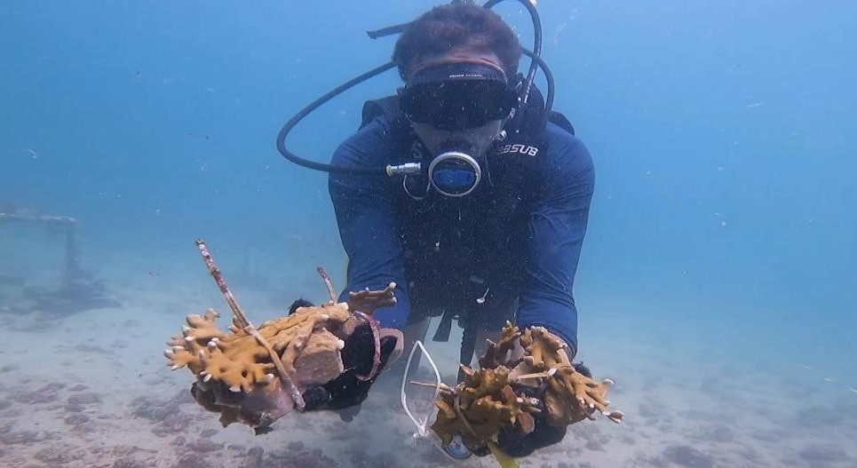 Além do polietileno, outros materiais como, cerâmica e aço inox, são empregados na recuperação dos corais. “Eles não precisam crescer por deposição de carbonato de cálcio. Crescem sobre as hastes que colocamos, o que acelera muito seu desenvolvimento, consequentemente aumentando a complexidade estrutural dos recifes no local, que é fundamental para a manutenção da biodiversidade”, acrescenta Igor Cruz.