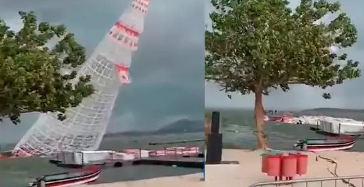 Em nota, a prefeitura de Maricá afirmou que a Defesa Civil emitiu um alerta de chuva forte às 15h45 e que a empresa contratada para instalar a estrutura iniciou a retirada dos funcionários.