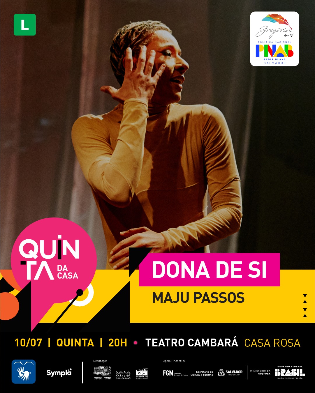 A performer e bailarina Maju Passos protagoniza o solo de dança “Dona de Si”, que tem pauta no projeto “Quinta da Casa” da Casa Rosa no dia 10 de julho, às 20h, no palco do Teatro Cambará. O espetáculo, com direção artística de Edileuza Santos, trata da travessia da artista a partir da maternidade e o seu encontro com a dança como um recurso ancestral de autoafirmação como mulher. Ingressos custam R$ 30 (inteira) e R$ 15 (meia), à venda pela Sympla. O espaço tem acessibilidade arquitetônica e oferece tradução em Libras.
