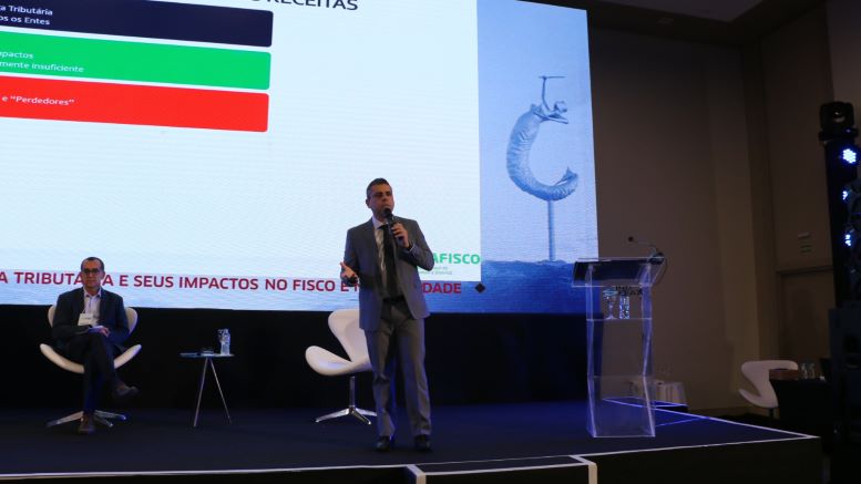 O presidente da Federação Nacional do Fisco Estadual e Distrital (Fenafisco), Francelino Valença, que é auditor fiscal da Fazenda de Pernambuco, durante sua palestra no evento, falou sobre unificação de cinco tributos (PIS, Cofins, ICMS, ISS e IPI) para criar o IVA Dual –composto pela Contribuição sobre Bens e Serviços (CBS), federal, e pelo Imposto sobre Bens e Serviços (IBS), de estados e municípios – e da criação do Comitê Gestor do novo tributo.