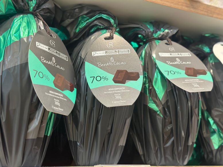Com a expectativa no aumento de 15% no faturamento – que o registrado no mesmo período em 2023, Luciana Leandro, gerente da Cacau Show (2° piso), conta que a marca tem apostado em produtos com menos concentração de açúcares, como a linha Bendito Cacau – com até 70% do ingrediente em sua composição. Na loja, também é possível encontrar opções 100% vegana, com sabor intenso e sem adição de item de origem animal.