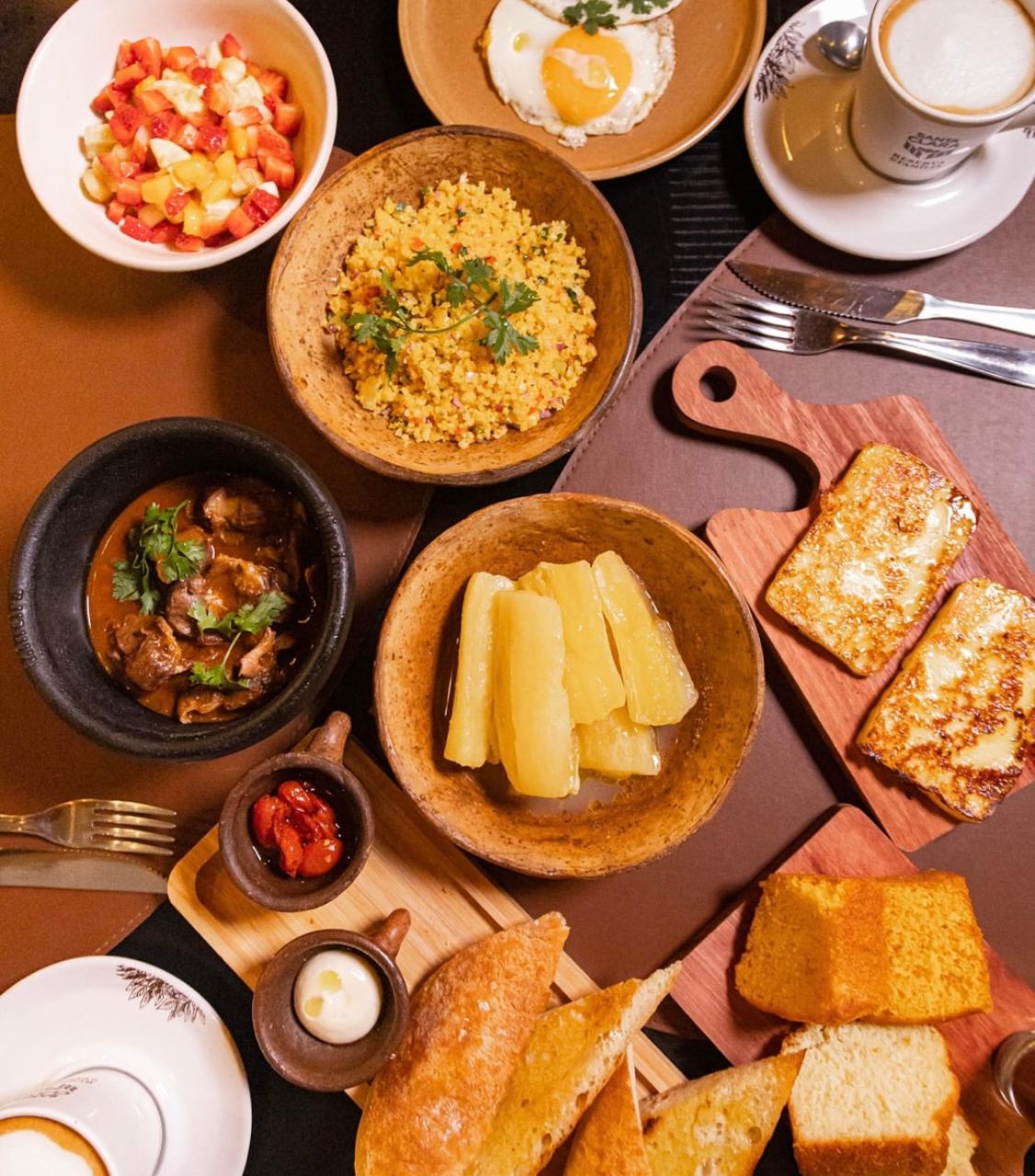 O cardápio especial traz clássicos da culinária nordestina com o toque do Sagratto: pão na chapa francês com aioli e manteiga de limão, aipim cozido, cuscuz amanteigado, bolo do dia, queijo coalho grelhado, ovos fritos ou mexidos, porção de frutas da estação e café coado. Além disso, o trio pode escolher uma proteína entre ensopado de moela (R$ 165), carne guisada (R$ 170) ou charque acebolada (R$ 175), todas receitas que resgatam a cozinha afetiva que marcou a infância do chef.