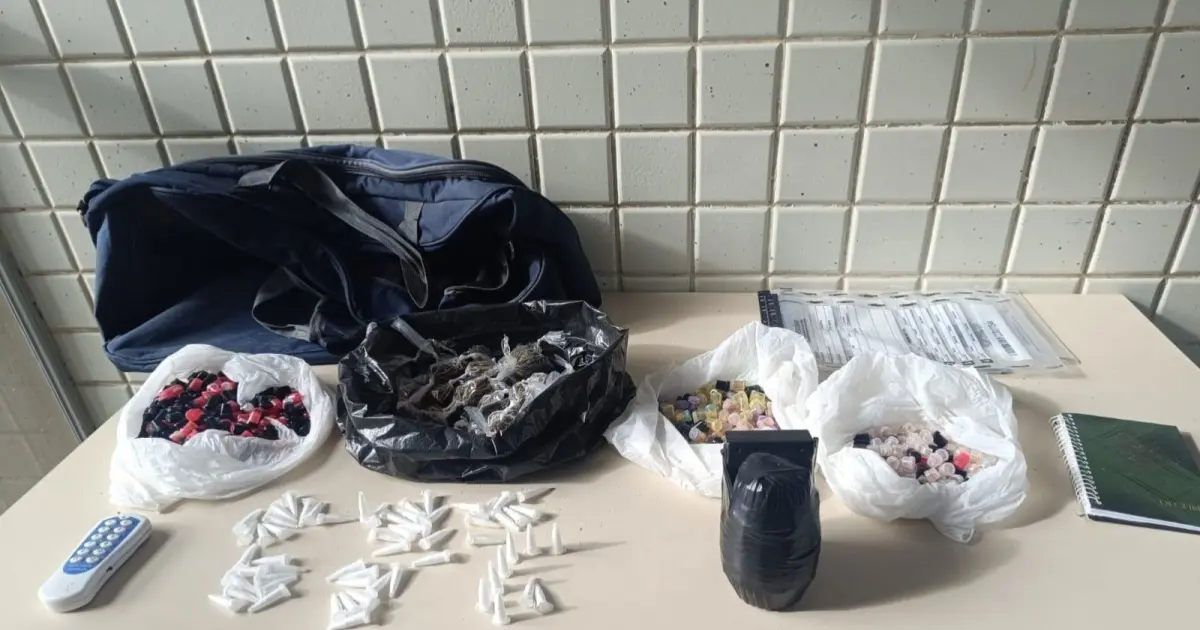 Com ele, foram apreendidos um artefato explosivo, 500 pinos de crack, 60 frascos contendo cocaína e 50 porções de maconha.