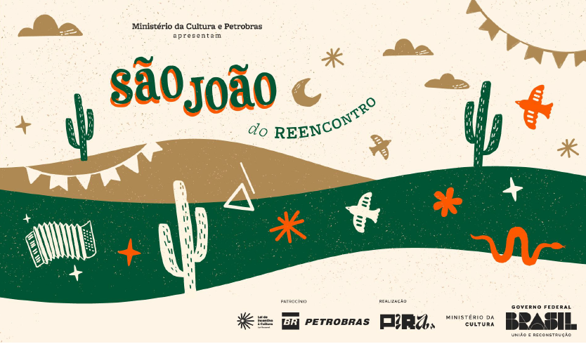 O São João do Reencontro é uma realização do Ministério da Cultura e Governo Federal, com patrocínio da Petrobras, correalização Pira e apoio das prefeituras locais.