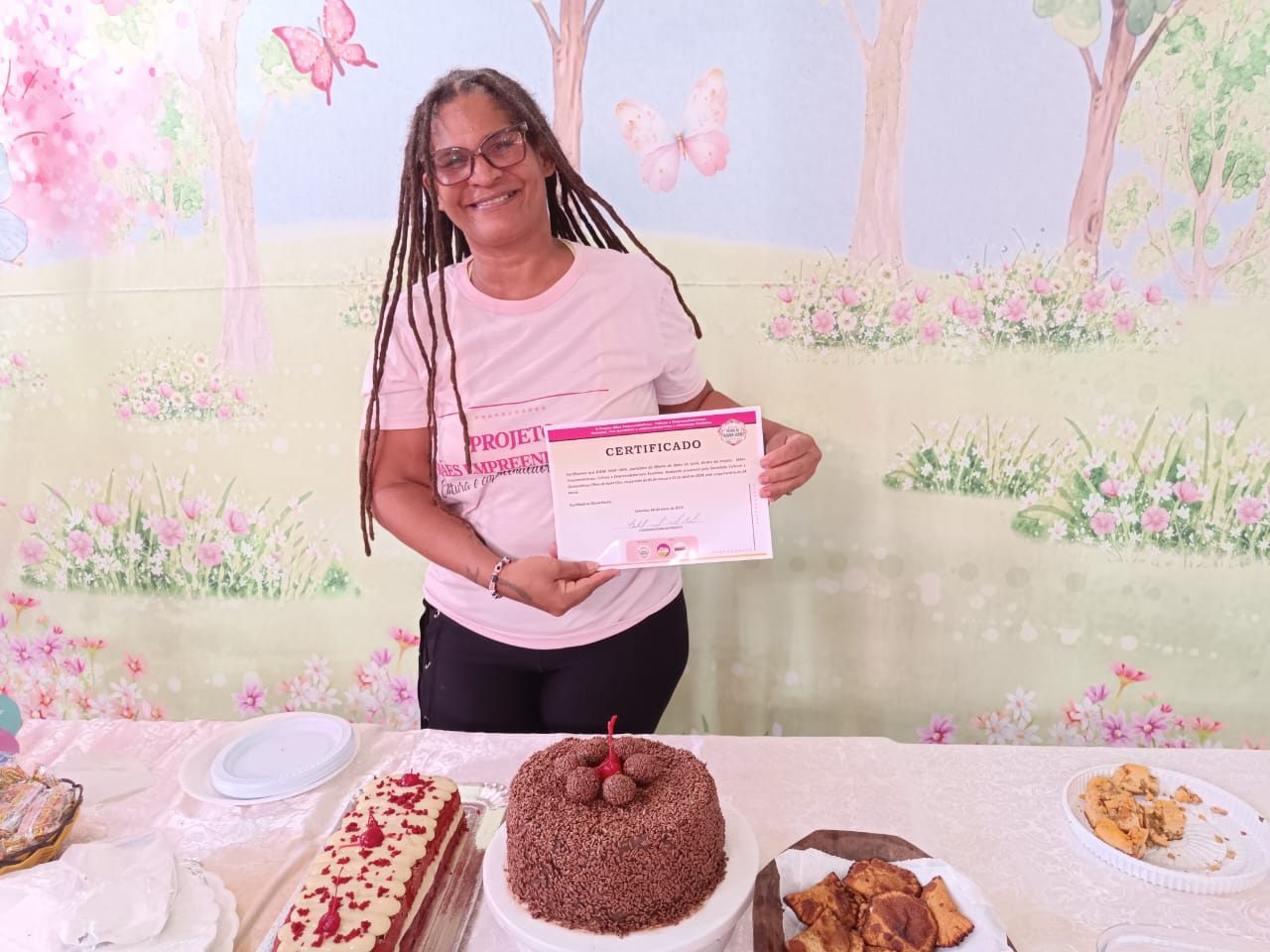 A SPM também participou da entrega de certificação para mulheres chefas de família monoparentais pelas oficinas de produção de bolos realizadas no âmbito do projeto Mães Empreendedoras: cultura e empreendedorismo feminino, que foi financiado pelo edital Elas à Frente.