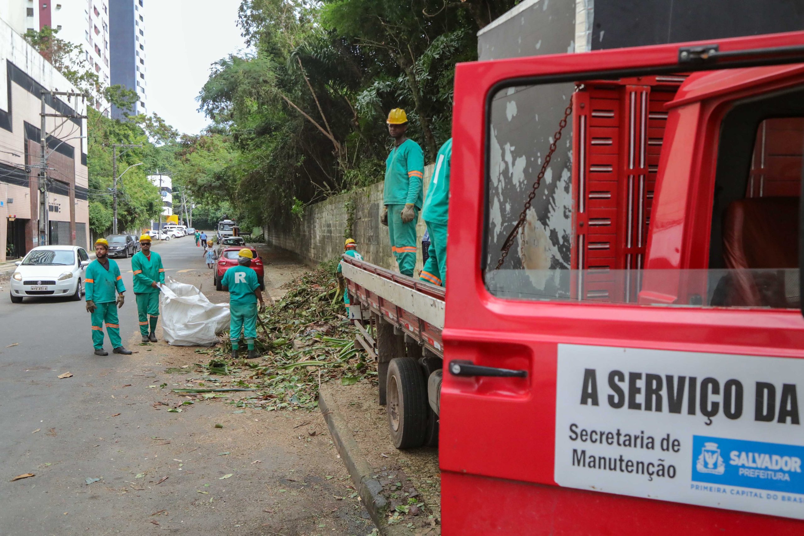 Como parte do cronograma de trabalho, equipes da Seman fazem a poda de espécies em locais como a Rua Cícero Simões, localizada nas imediações do Parque da Cidade, no Itaigara. No local, a operação contou com dois caminhões e dez técnicos que apararam os vegetais. As árvores bastante crescidas já ultrapassavam o limite do muro do Parque, resultando em galhos pendurados que inviabilizavam o uso da calçada.