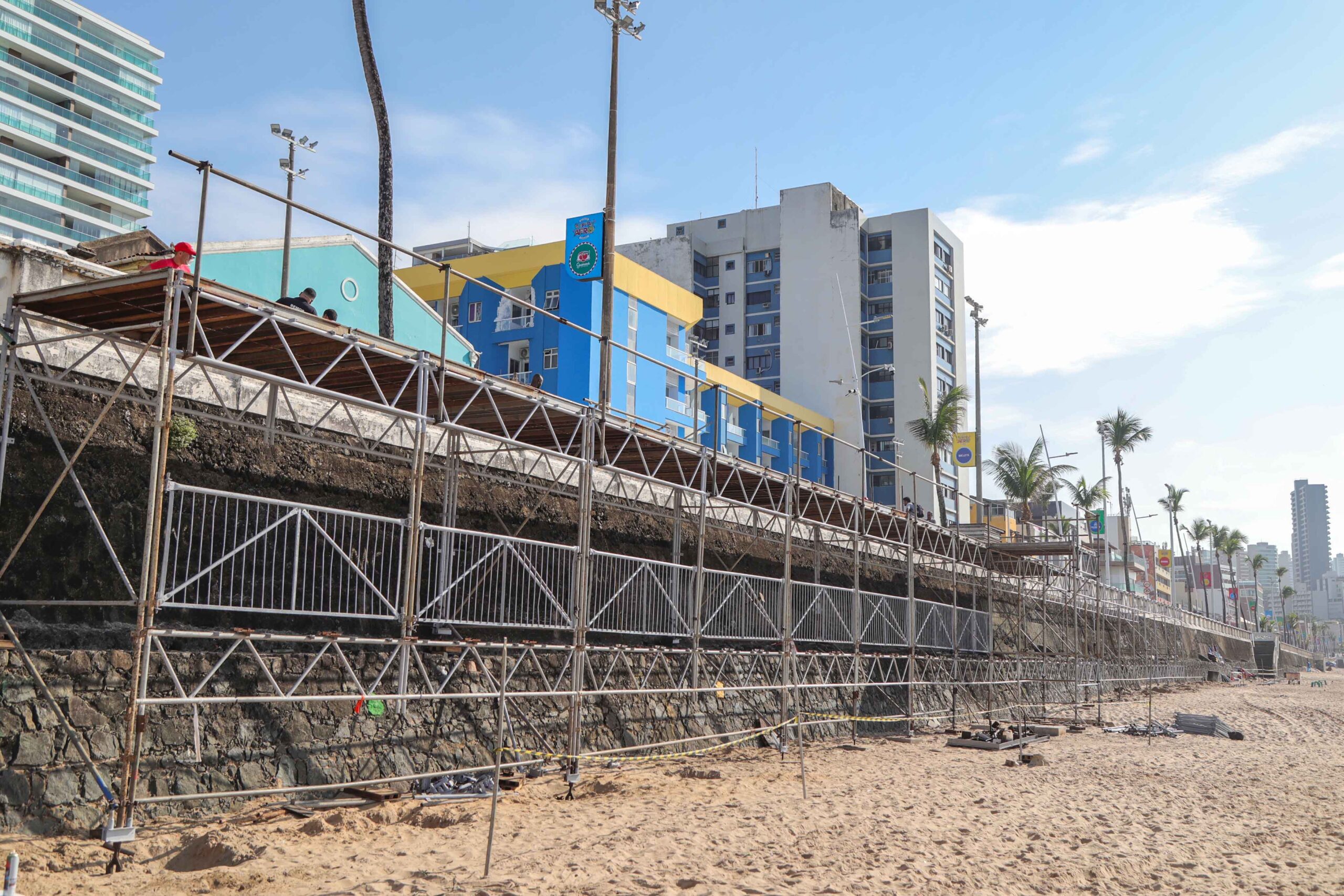 A Secretaria Municipal de Ordem Pública (Semop) está instalando uma nova estrutura dedicada exclusivamente aos ambulantes que vão atuar na Barra (Circuito Dodô) do Carnaval de Salvador. Construído na areia, o espaço funcionará como uma extensão do calçadão da praia, entre o Farol e o Barravento, onde os trabalhadores informais poderão colocar o isopor, garantindo uma segurança a mais para eles e para o material comercializado.