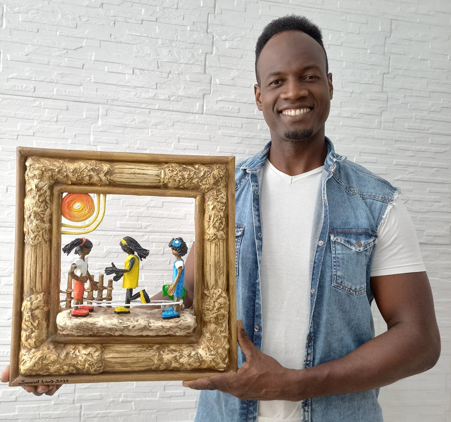 Samuel começou sua trajetória nas artes como autodidata, trabalhando em peças com cimento, e foi aprimorando a técnica com ajuda profissional até aprender a moldar nas folhas de jornais. Antes do bacharelado, ele estudou no extinto Instituto de Artesanato Visconde de Mauá. Hoje, o artista empresta o seu talento aos objetos que produz e vislumbra alçar voos mais altos para poder viver da arte.