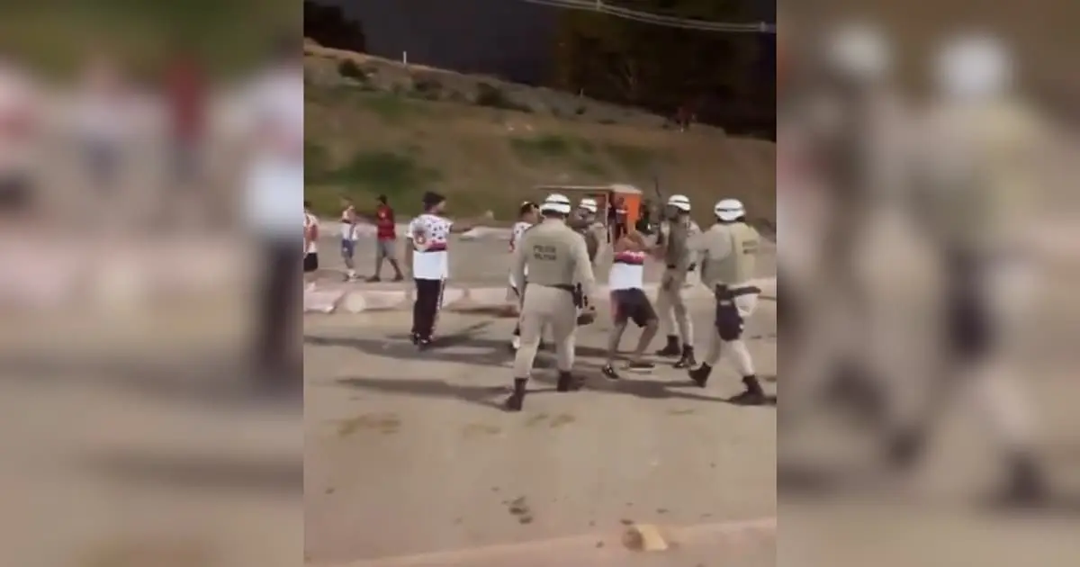 Em vídeo divulgado nas redes sociais, é possível identificar um grupo de membros da organizada do Rubro-Negro Carioca, iniciando um ataque a outros membros da torcida do Leão. A policia prontamente chegou agredindo dois torcedores com golpes de cacetete.