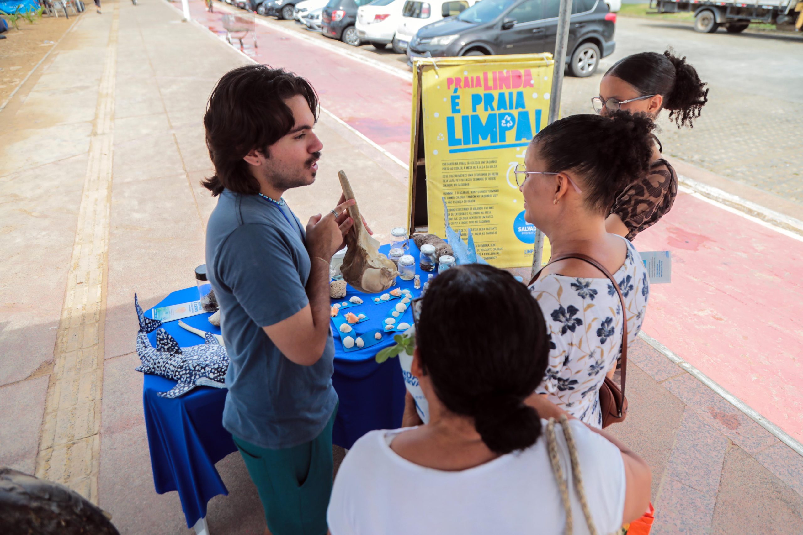 As ações educativas ocorrem em diferentes praias, em parceria com o Núcleo Integrado de Estudos em Zoologia (Niez) da Universidade Católica de Salvador (UCSal). A programação inclui oficinas interativas, exposições de animais marinhos e orientações sobre a destinação correta de resíduos como plásticos, latas e vidros, além da distribuição de mudas de plantas.