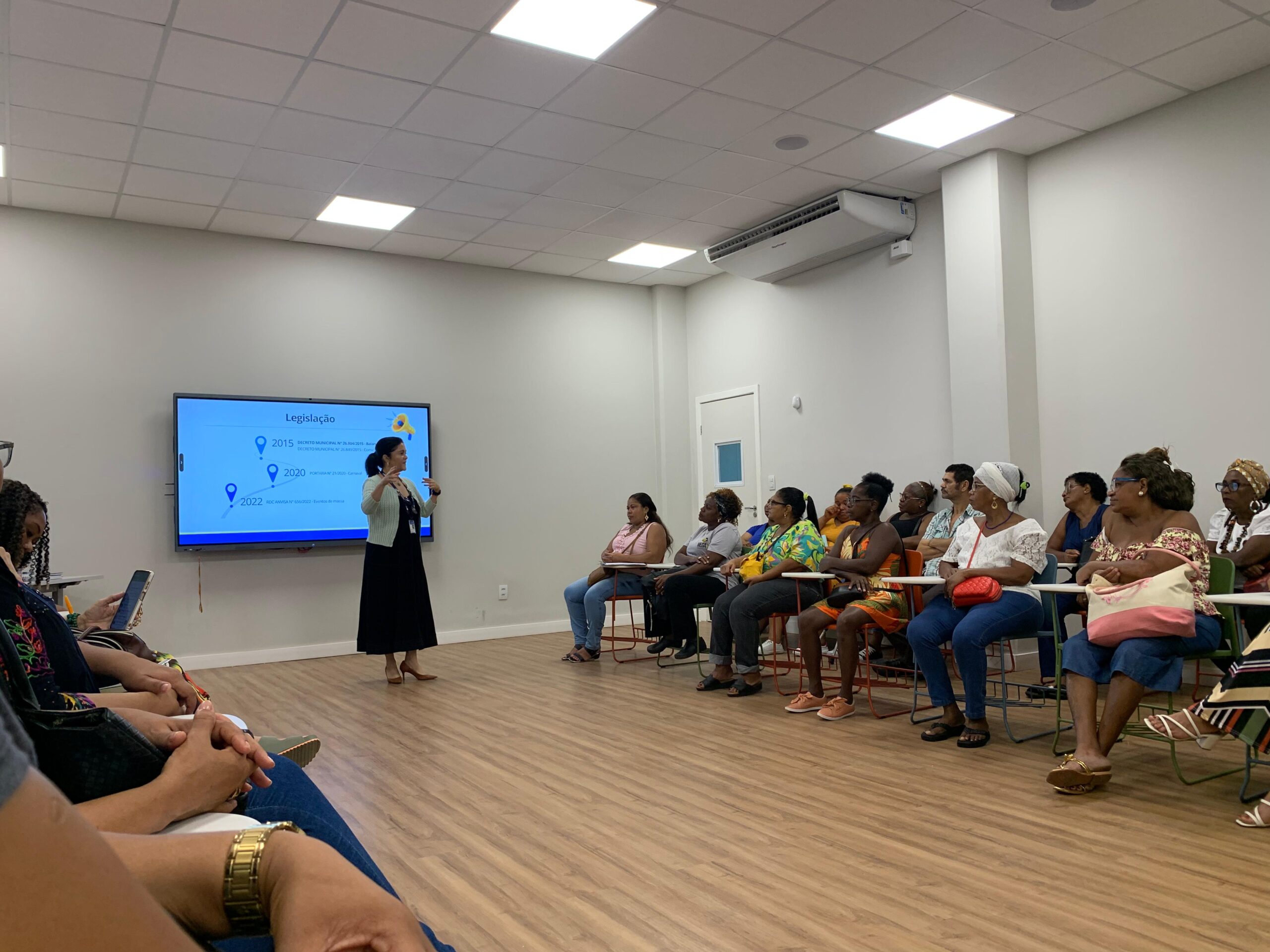 O treinamento também reuniu baianas e baianos de acarajé e mingau na última segunda-feira (17). Cerca de 70 profissionais participaram da ação educativa, que aconteceu na Escola de Saúde Pública de Salvador (ESPS), no Comércio.