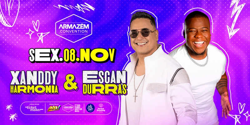 Sexta-feira é dia de agito e muito swing no Armazém Convention. O espaço, localizado no Parque Shopping Bahia, em Lauro de Freitas, recebe no palco dois grandes nomes da música baiana. Xanddy Harmonia e Escandurras comandam a festa neste dia 8 de novembro, com dois shows especiais, apresentados individualmente.