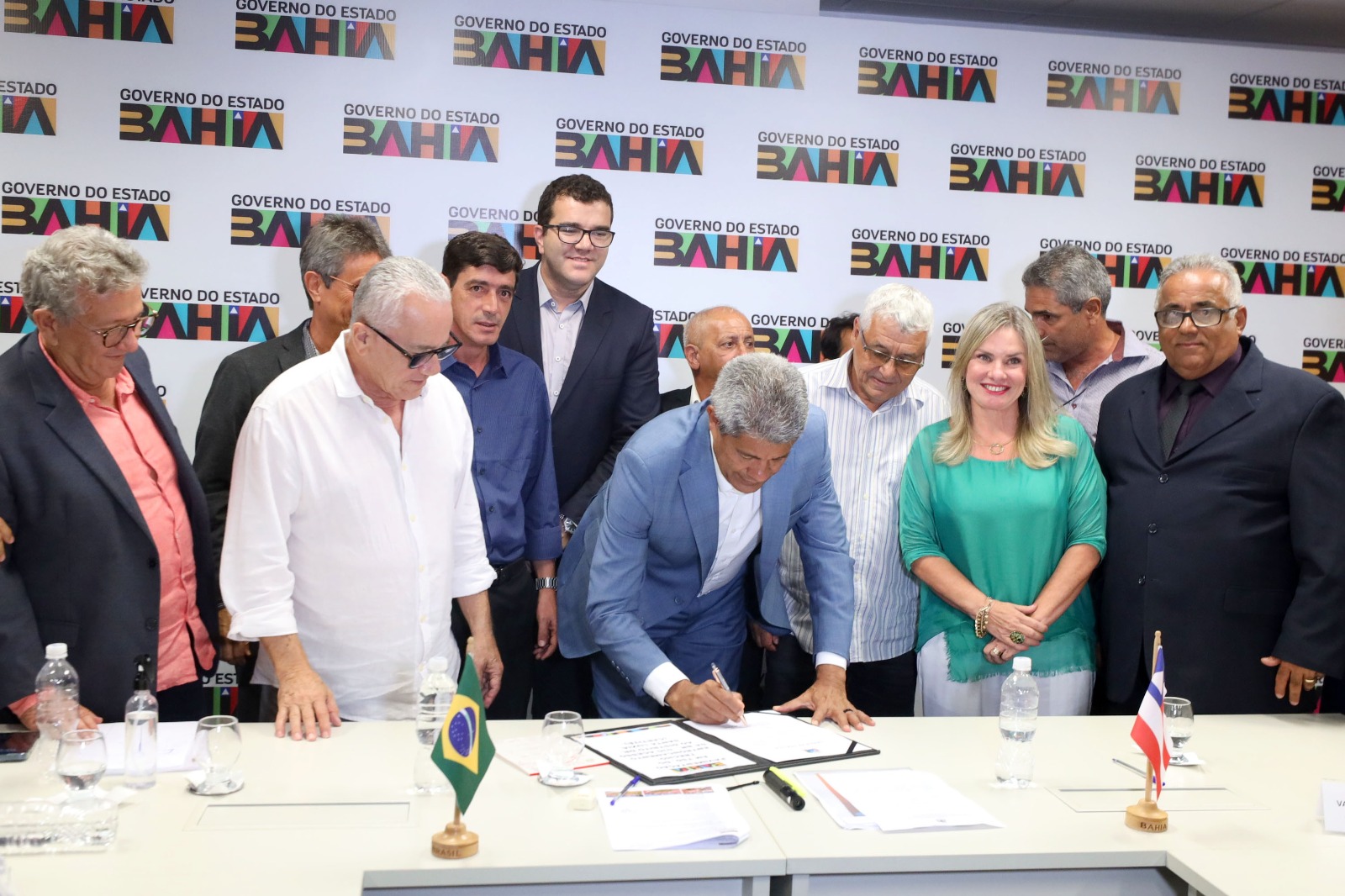 O distrito de Santa Luzia, em Caetité, no sudoeste baiano, vai ganhar quase quatro quilômetros de pavimentação asfáltica com tratamento superficial duplo no acesso à zona rural, com a assinatura nesta quinta-feira (22) de ordem de serviço para início das obras na BA-156. A chegada ao município pelo entroncamento da BR-122 também terá 9,6 quilômetros pavimentados em três fases. O governador Jerônimo Rodrigues, o superintendente de Infraestrutura de Transportes (SIT), vinculada à Secretaria de Infraestrutura (Seinfra), Saulo Pontes, e secretários de estado apresentaram o projeto para vereadores e lideranças do município no Centro Administrativo da Bahia (CAB), em Salvador.