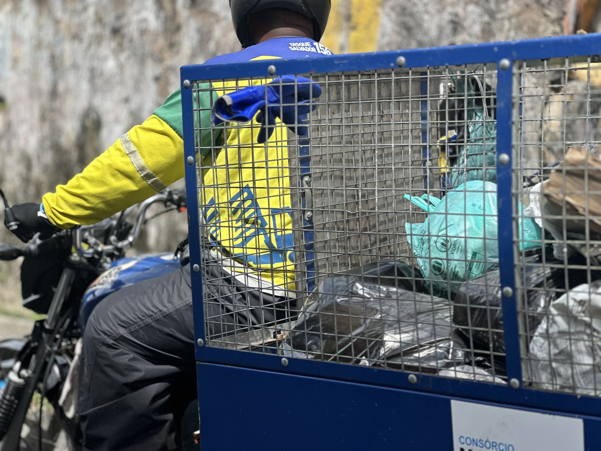 A Empresa de Limpeza Urbana de Salvador (Limpurb) reforça a coleta porta a porta em ruas estreitas da cidade por meio do serviço de moto coletora. A iniciativa funciona como alternativa para atender locais de difícil acesso, onde os caminhões de coleta domiciliar não conseguem chegar.
