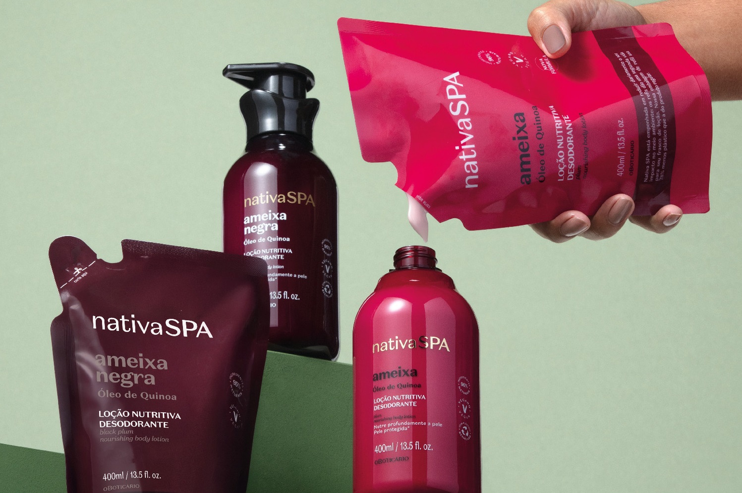 Além de estimular a experimentação e o uso dos produtos, a marca destaca os benefícios de optar pelos refis, que geram menos resíduos a longo prazo e reduzem o impacto ambiental. Quando um refil é produzido, utiliza-se uma quantidade menor de plástico em toda a cadeia produtiva: por exemplo, na linha Nativa SPA, o refil de 350 ml utiliza 78% menos plástico do que a embalagem regular de 400ml. Com essa escolha, é possível evitar o descarte de aproximadamente 280 toneladas de resíduos por ano – o equivalente ao plástico gerado diariamente por cerca de 5.500 pessoas no Brasil, segundo dados da Abrelpe (Associação Brasileira de Empresas de Limpeza Pública e Resíduos Especiais). Ainda sobre o pilar de sustentabilidade, o Boticário conta com Boti Recicla, o maior programa de reciclagem do mundo da beleza, que recebe embalagens vazias de cosméticos de qualquer marca e as encaminha para cooperativas parceiras em todo o país. O material recolhido é ressignificado, dando origem a itens de ecodesign presentes nas lojas-conceito e compondo projetos como as lojas sustentáveis da marca, construídas com uma tonelada de resíduos.