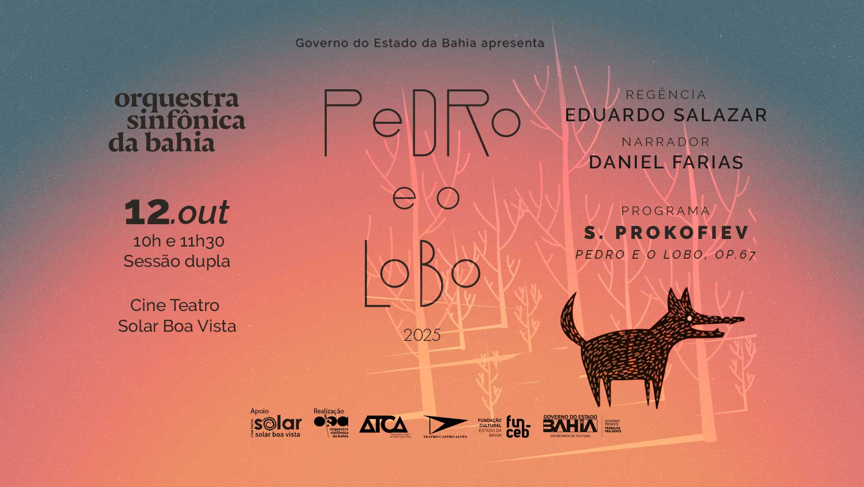 Na data em que celebramos o Dia das Crianças (neste domingo, 12/10), a Orquestra Sinfônica da Bahia apresenta a obra infantil “Pedro e o Lobo”, do compositor russo Serguei Prokofiev (1891-1953), em duas sessões, às 10h e 11h30, no Cine Teatro Solar Boa Vista (Eng. Velho de Brotas).