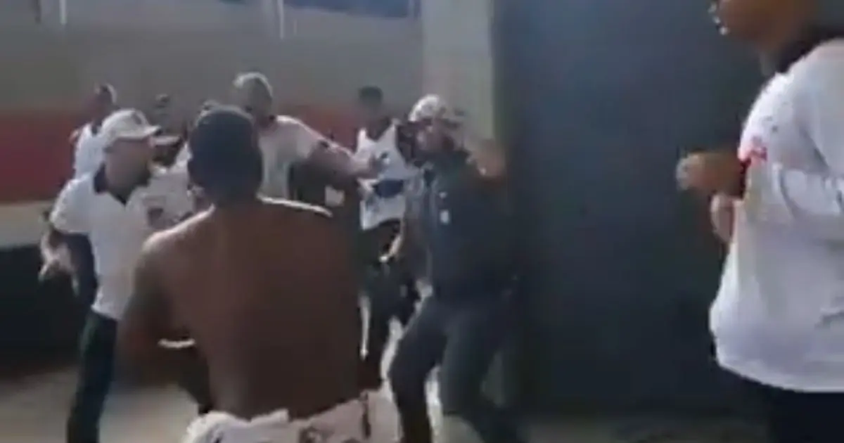 As imagens mostram o agente de segurança, que estava sozinho, tentando conter a confusão quando é atingido por um soco e cai ao chão. Na sequência, outros torcedores desferem golpes contra ele, até que reforços da corporação chegam para dispersar o tumulto. Polícia Militar de São Paul, Vasco e Santos ainda não se manifestaram oficialmente sobre a ocorrência.