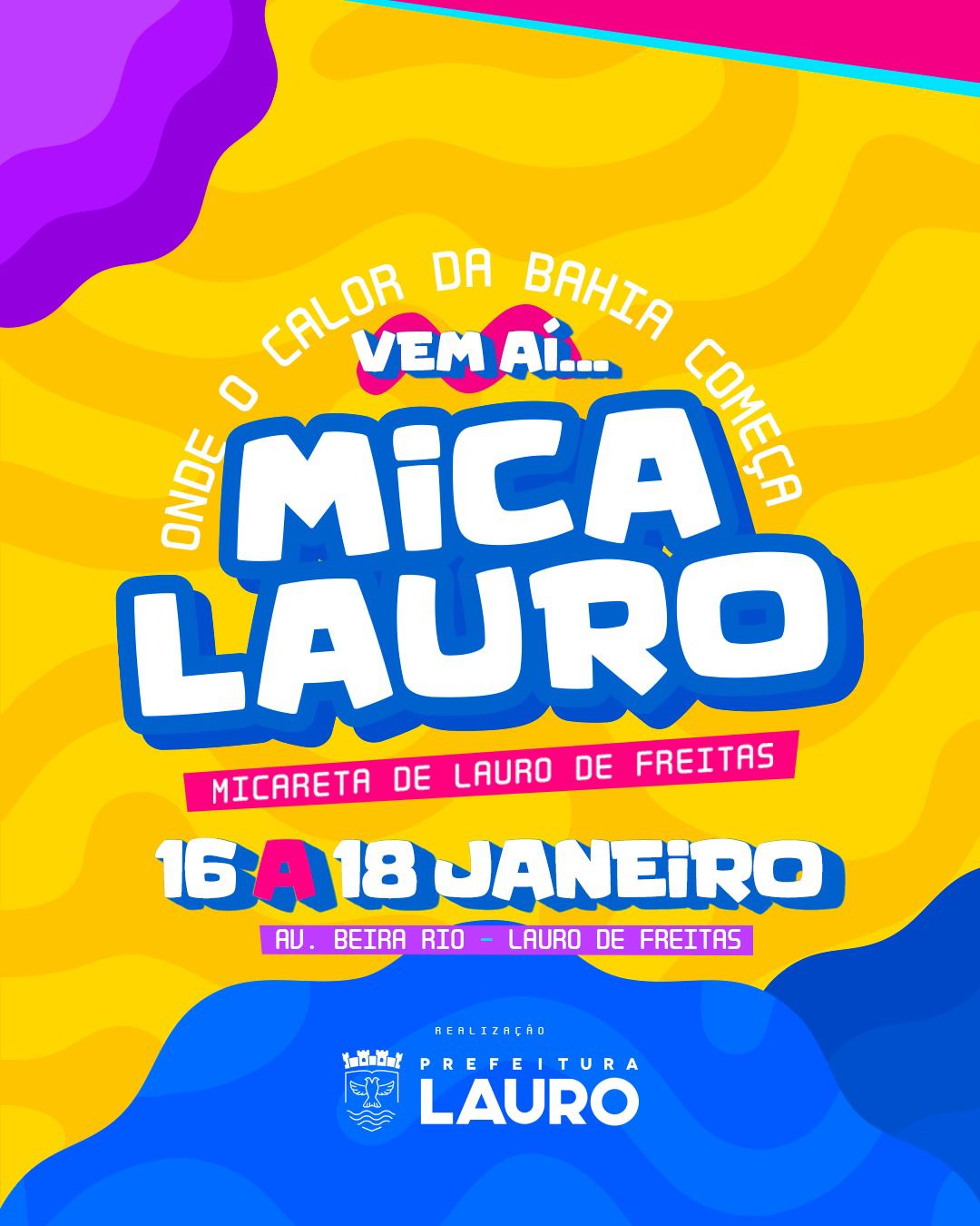 Com o objetivo de promover alegria, cultura e diversão para toda a família, a Prefeitura de Lauro de Freitas realizará, entre os dias 16, 17 e 18 de janeiro de 2026, a Mica Lauro. A micareta chega para integrar o circuito das grandes festas populares da Bahia e abrir o calendário da folia no município em grande estilo.