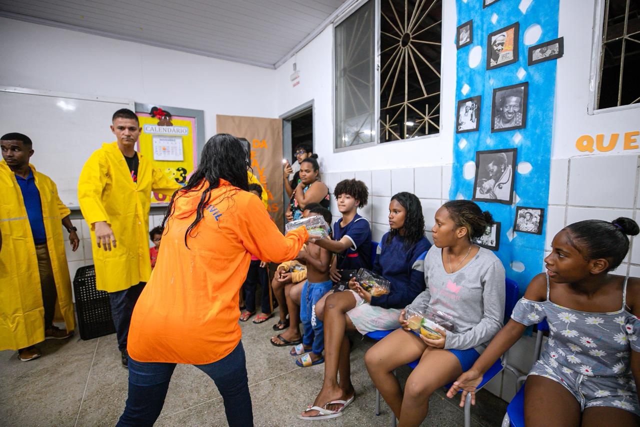 A Prefeitura de Lauro de Freitas, por meio da Secretaria Municipal de Desenvolvimento Social e Cidadania (SEMDESC), iniciou na noite desta sexta-feira (21/11) a distribuição de alimentos para famílias afetadas pelas fortes chuvas que vêm atingindo o município nos últimos dias. A ação emergencial está sendo realizada na Escola Municipal de Cadetes Mirins Euzébio Brito da Cruz, no bairro de Portão, onde parte dos moradores desalojados foi acolhida.