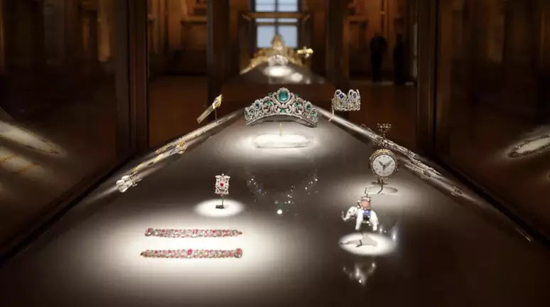 Entre as joias mais icônicas expostas estão o diamante Regent, de 140 quilates — considerado um dos mais perfeitos do mundo e usado por Napoleão Bonaparte e pelo rei Luís XV —, além do Sancy, do Hortensia e do espinélio Côte de Bretagne, que pertenceu à rainha Ana da Bretanha.