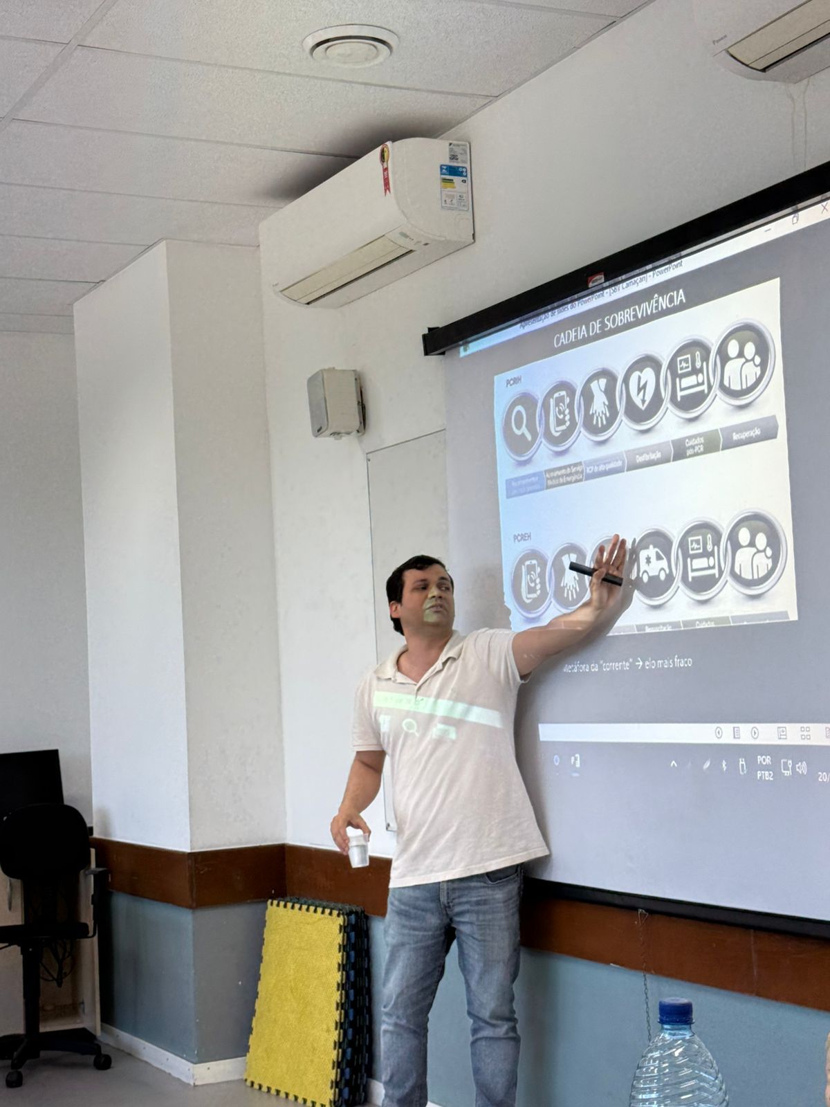 Marcando este reinício, na quarta-feira (20), foi realizado um treinamento de Suporte Básico de Vida (BLS), voltado para condutores socorristas e técnicos de enfermagem do Samu e de Unidades de Pronto Atendimento (UPAs) do município. A capacitação abordou temas essenciais, como reconhecimento precoce de situações de risco, avaliação inicial da vítima, atendimento às emergências cardiorrespiratórias, realização correta da ressuscitação cardiopulmonar (RCP), utilização do desfibrilador externo automático (DEA), e condutas padronizadas para atendimento seguro e eficaz.