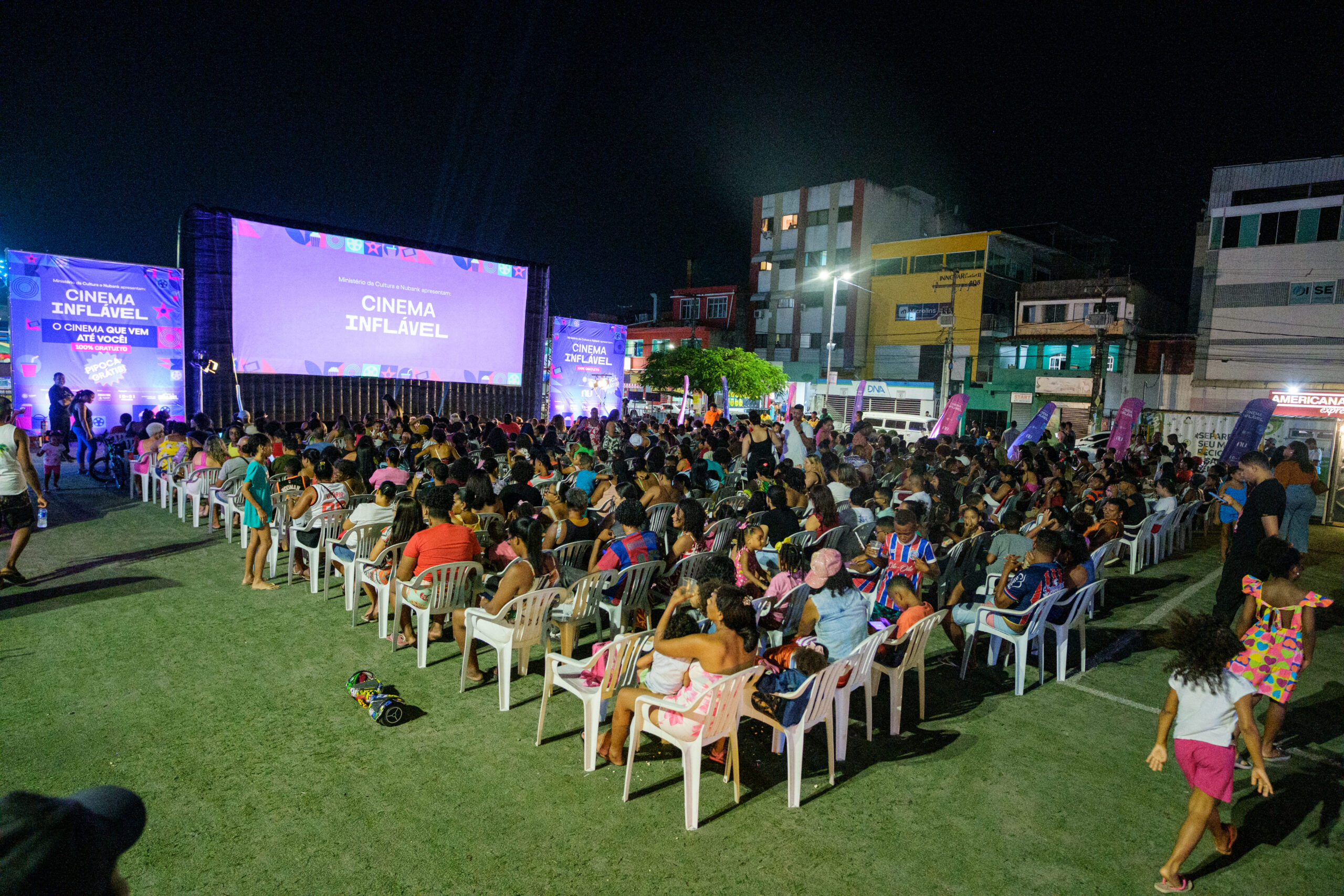 O Cinema Inflável tem como missão democratizar o acesso ao audiovisual, levando estrutura de cinema itinerante para espaços públicos e aproximando a sétima arte das comunidades, já tendo passado por diversas cidades brasileiras. Apresentado pelo Ministério da Cultura e Nubank, o projeto é uma realização da D+3 Produções, em coprodução com a Maré Produções. Em Camaçari, tem apoio da Prefeitura, através da Secretaria de Cultura (Secult).